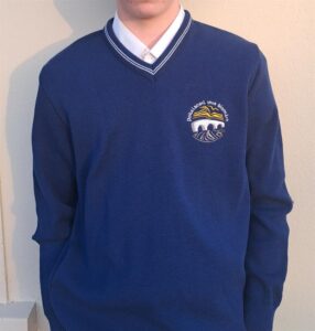 - Blue School Jumper with Crest (pictured above) available from 3 stockists locally